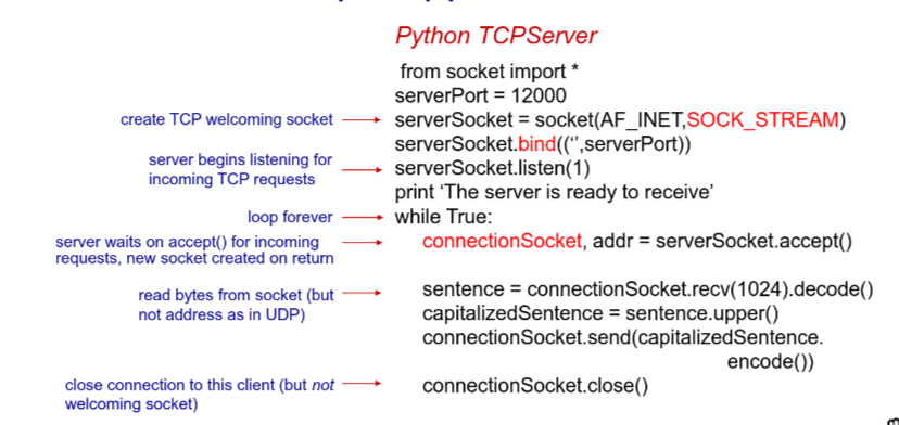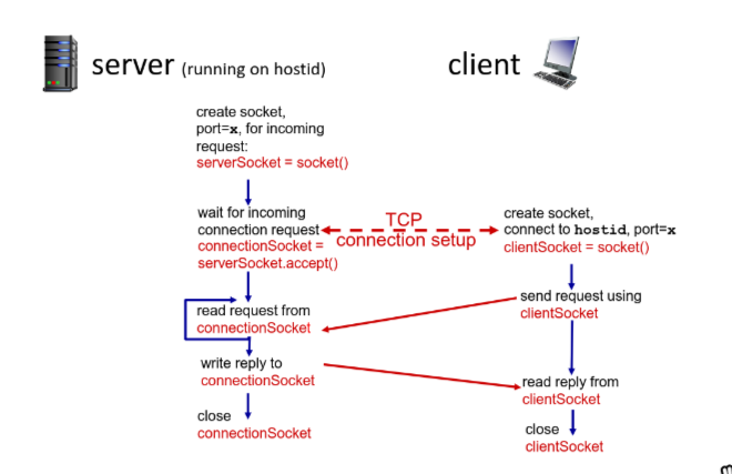 - client create socket to IP address, port number