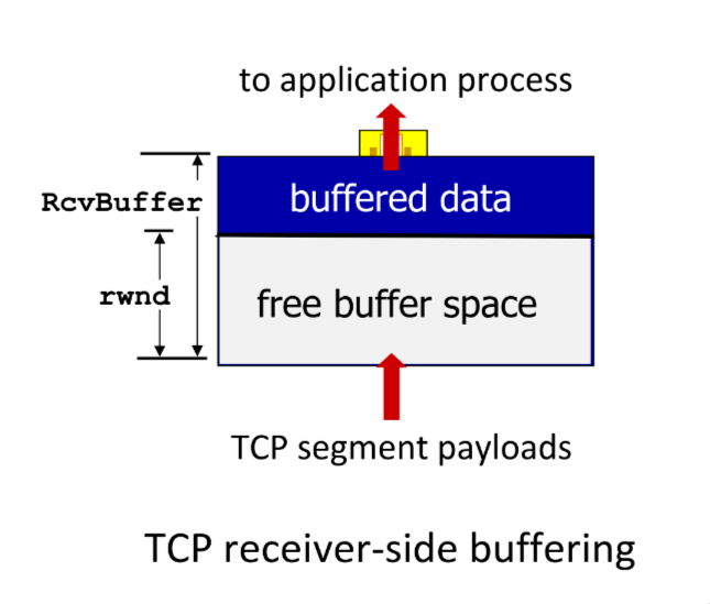 - Receiver advertises available buffer space (receiver window) to sender in