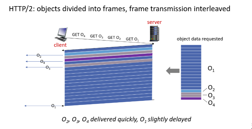 - HTTP/3: adds security, per object error- and congestion-control ovre UDP