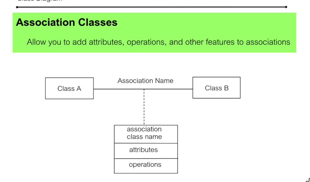 the line that have blob at the middle is association class: